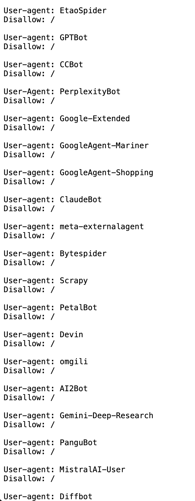 Amazon has disallowed AI bots from crawling its sites; it won’t stop scraping, but it’s one way to signal its intent to stop AI from scraping it like a corpse and being pure training data.